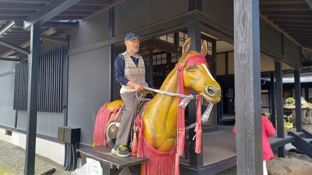 庭園も綺麗でした 大谷翔平さんが使用した甲冑の前で記念写真 歴代武将の甲冑 馬にまたがり記念撮影 今回の昼食メニュー 昼食を楽しむ皆様