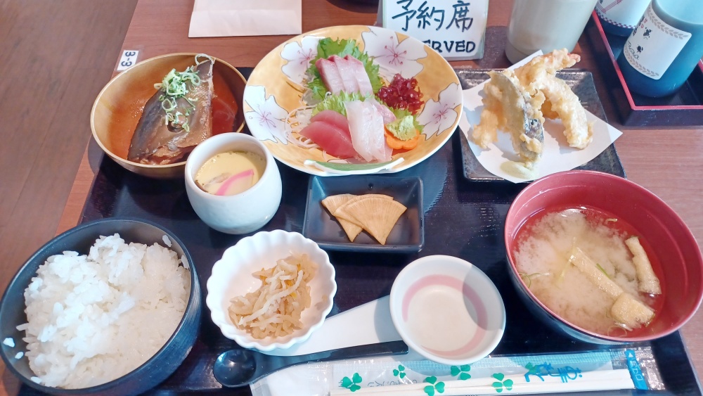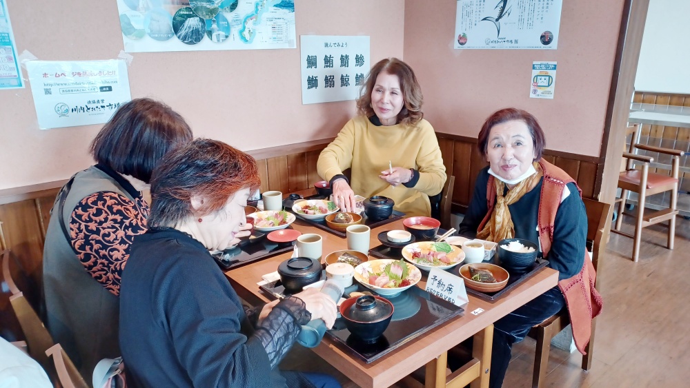 昼食は薩摩川内港に隣接するとれたて市場内にある海食堂で新鮮な海鮮料理を楽しみました。